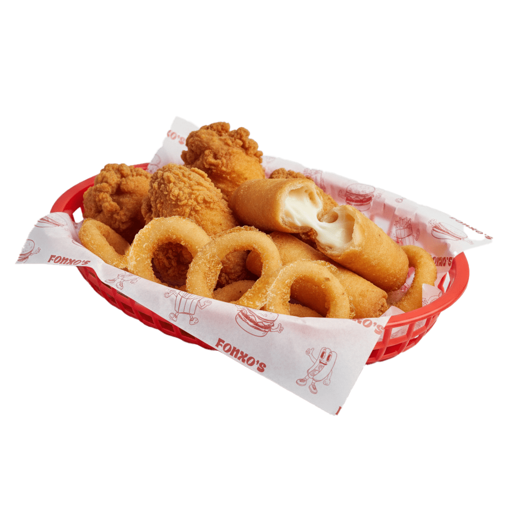 3 tequeños. 3 alitas. 6 aros de cebolla. 1 salsa. Todo en un mismo lugar